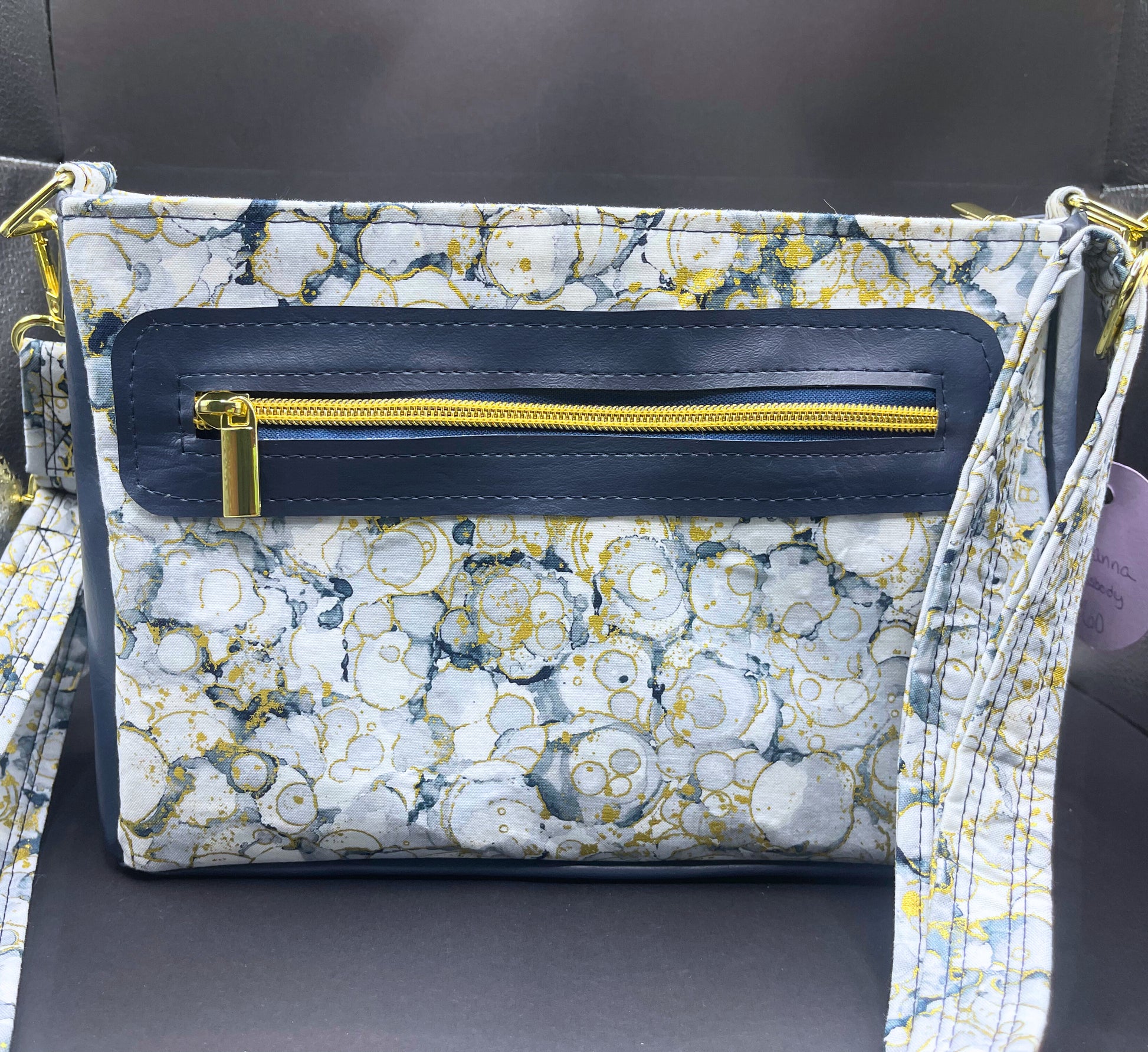 Alanna is a unique crossbody bag, loaded with surprises everywhere you turn. Along with all of my crossbody straps, the Alanna strap is size-inclusive and fully adjustable. On the front of this bag, you will find a pocket that runs the width, equipped with a magnetic snap closure. Flip it around and you'll find a second pocket, this one with a zipper closure. After opening the fully zippered top, you will encounter even more surprises, four (yes, four) slip pockets and an interior zipper pocket!